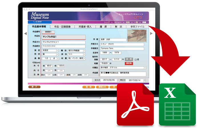 このシステムは、中・小規模の美術館に収蔵されている資料に関するあらゆる情報を一元的に管理するデジタル台帳です。